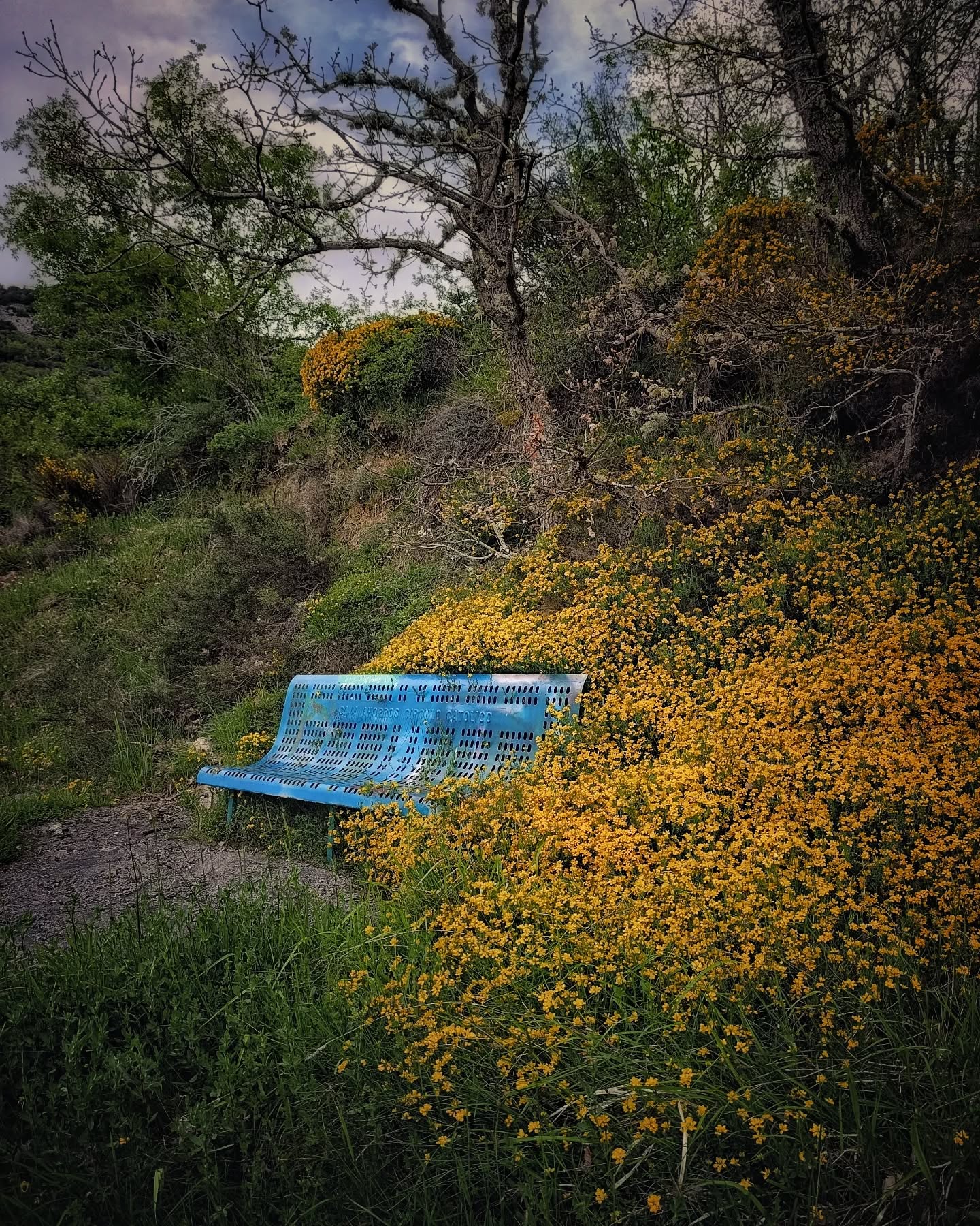 ¿Cuántas temporadas le quedan al banco antes de ser engullido por la naturaleza?, visto en mi pueblo. ¿Dónde estamos?