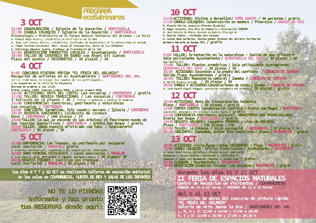 La localidad de Hortigüela dará el pistoletazo de salida a la 2ª edición de la Feria de Promoción y Difusión Ecosabinares, que del 3 al 13 de octubre recorrerá nueve pueblos del Arlanza con talleres, conferencias, degustaciones y otras propuestas pensadas para poner en valor la joya natural de la comarca: los sabinares.